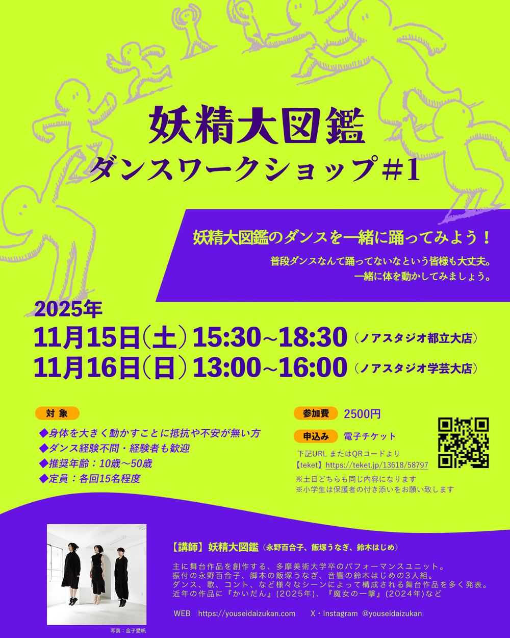 妖精大図鑑の振付家、永野百合子の振付を一緒に踊ってみるダンスワークショップです。