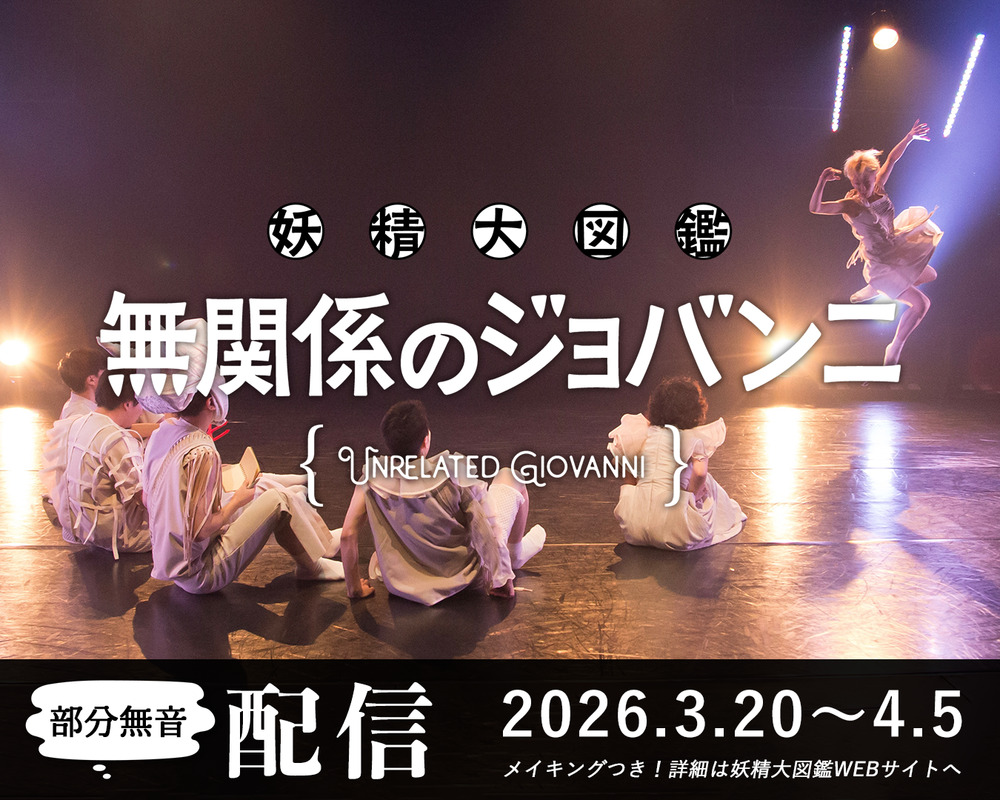 2023年10月に上演された妖精大図鑑『無関係のジョバンニ』の記録映像+メイキングを、期間限定で配信いたします。