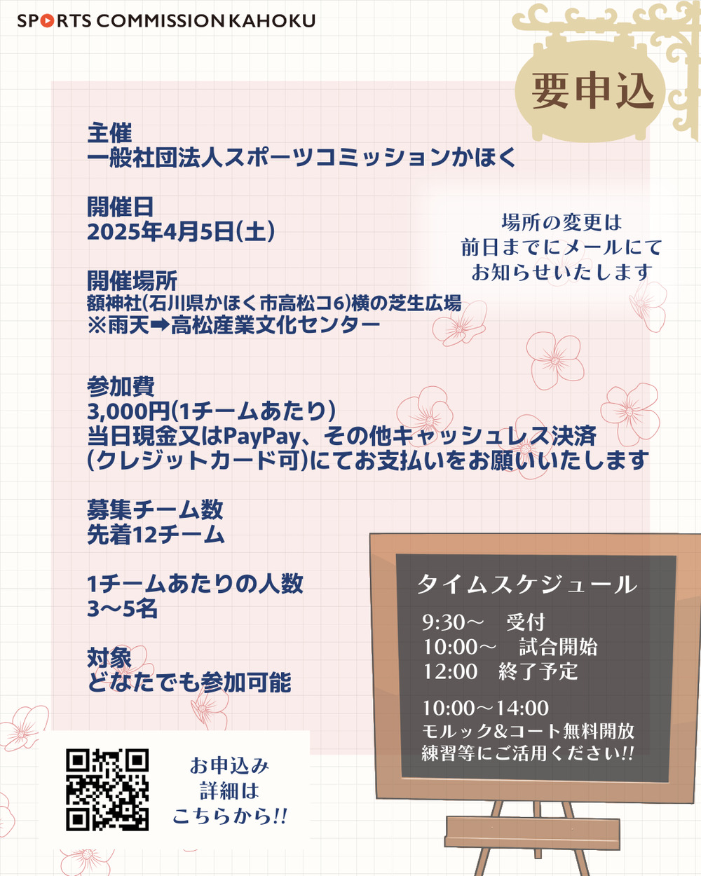 一般社団法人スポーツコミッションかほくの1周年を記念したモルック大会を開催いたします!!
