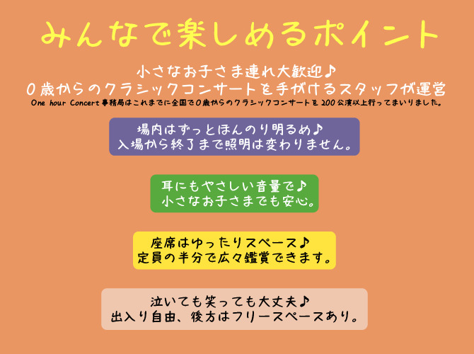 ★One hour Concert事務局はこれまでに全国で0歳からのクラシックコンサートを200公演以上行ってまいりました。