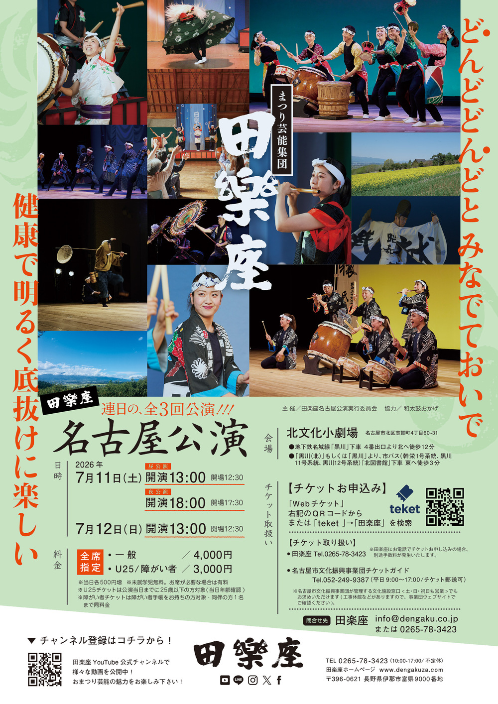 ※公演の中止など変動がございましたら、田楽座HPやfacebookページで情報を掲示、購入者の方へメールで直接お知らせします。