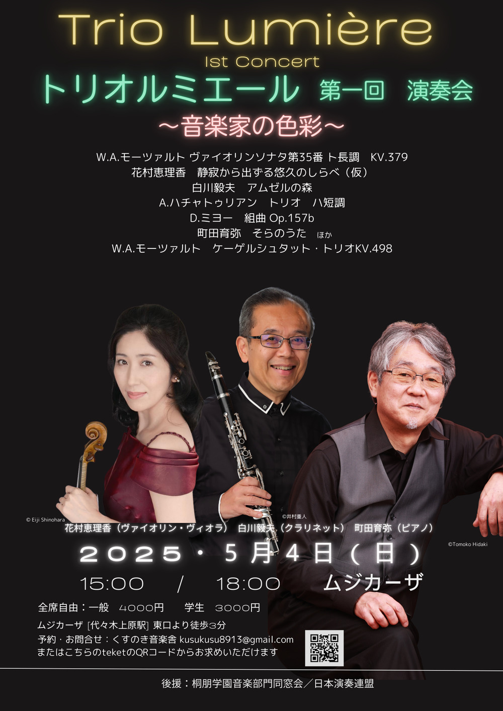花村恵理香(ヴァイオリン・ヴィオラ) 白川毅夫(クラリネット) 町田育弥(ピアノ)