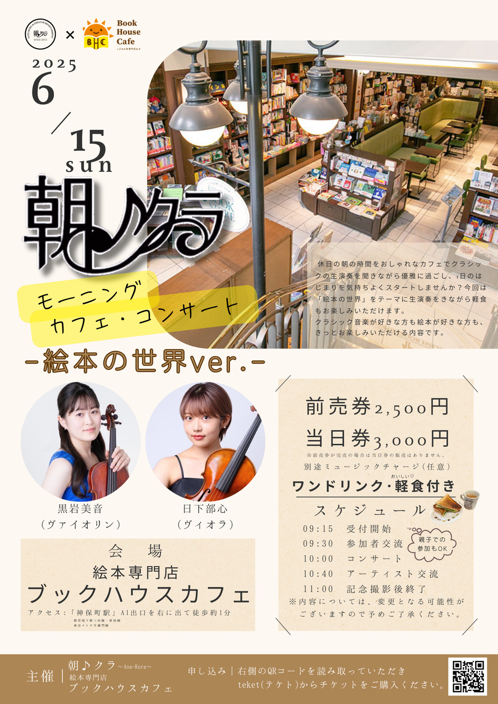 コロナ後では初となる朝♪クラの復活企画、今回は"絵本の世界"をテーマに神保町にあるブックハウスカフェさんとの共催で行います。周りを絵本に囲まれた素敵なカフェで皆様をお待ちしています。