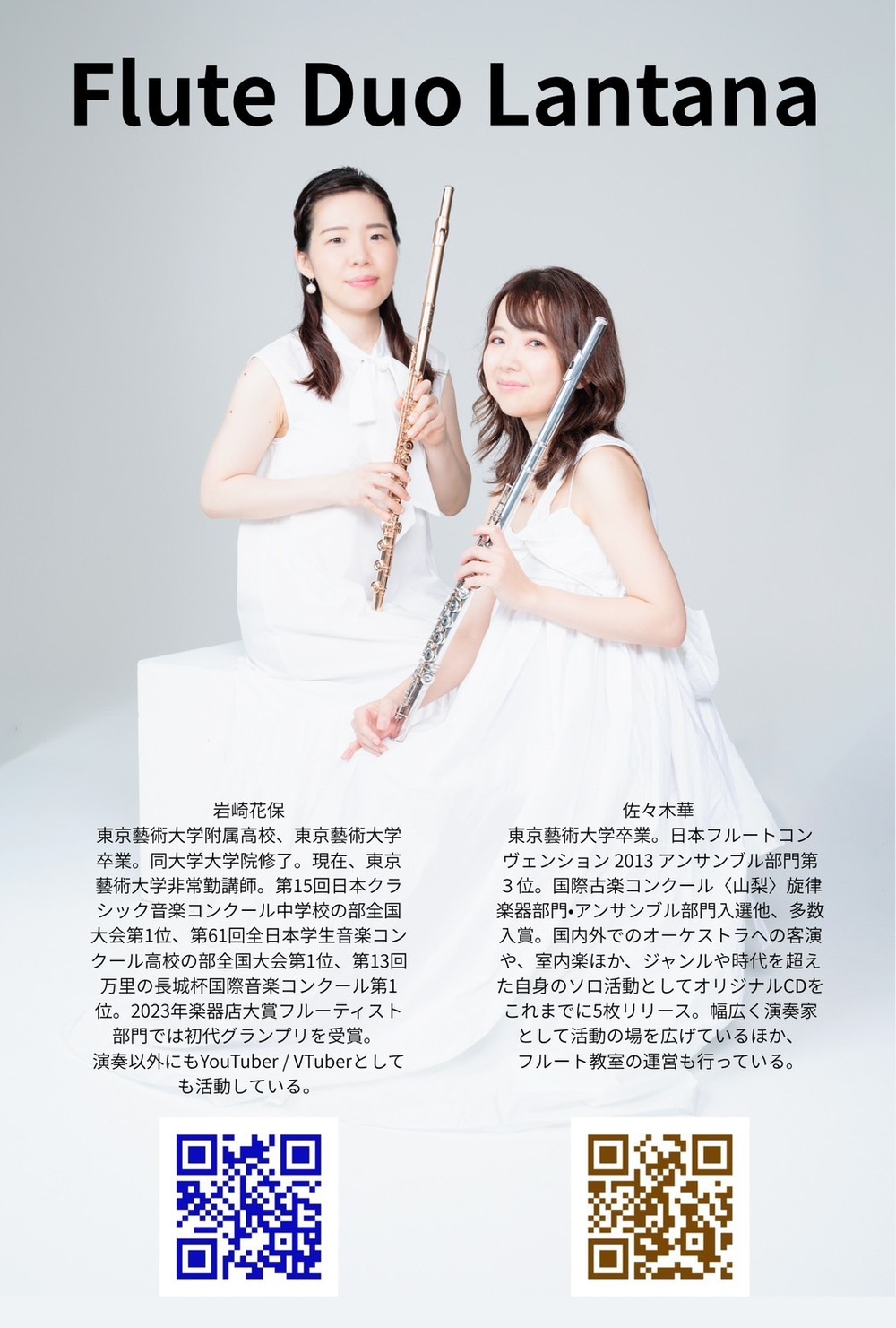 東京藝術大学卒の岩崎花保と佐々木華によるユニット。現代のフルートからルネサンス時代のフルートまで、時を超えて音楽を奏でる。第33回国際古楽コンクール〈山梨〉アンサンブル部門入選。ソニー音楽財団「こどものためのクラシック」にて企画が採用される。