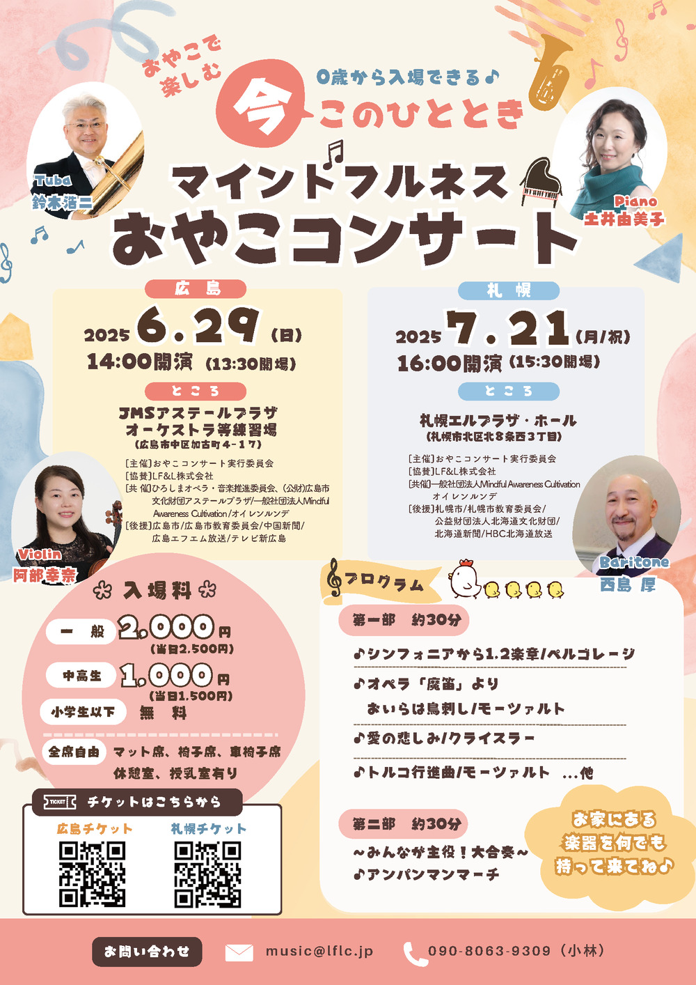 [共催]ひろしまオペラ・音楽推進委員会、(公財)広島市文化財団アステールプラザ/一般社団法人Mindful Auareness Cultivation/オイレンルンデ
