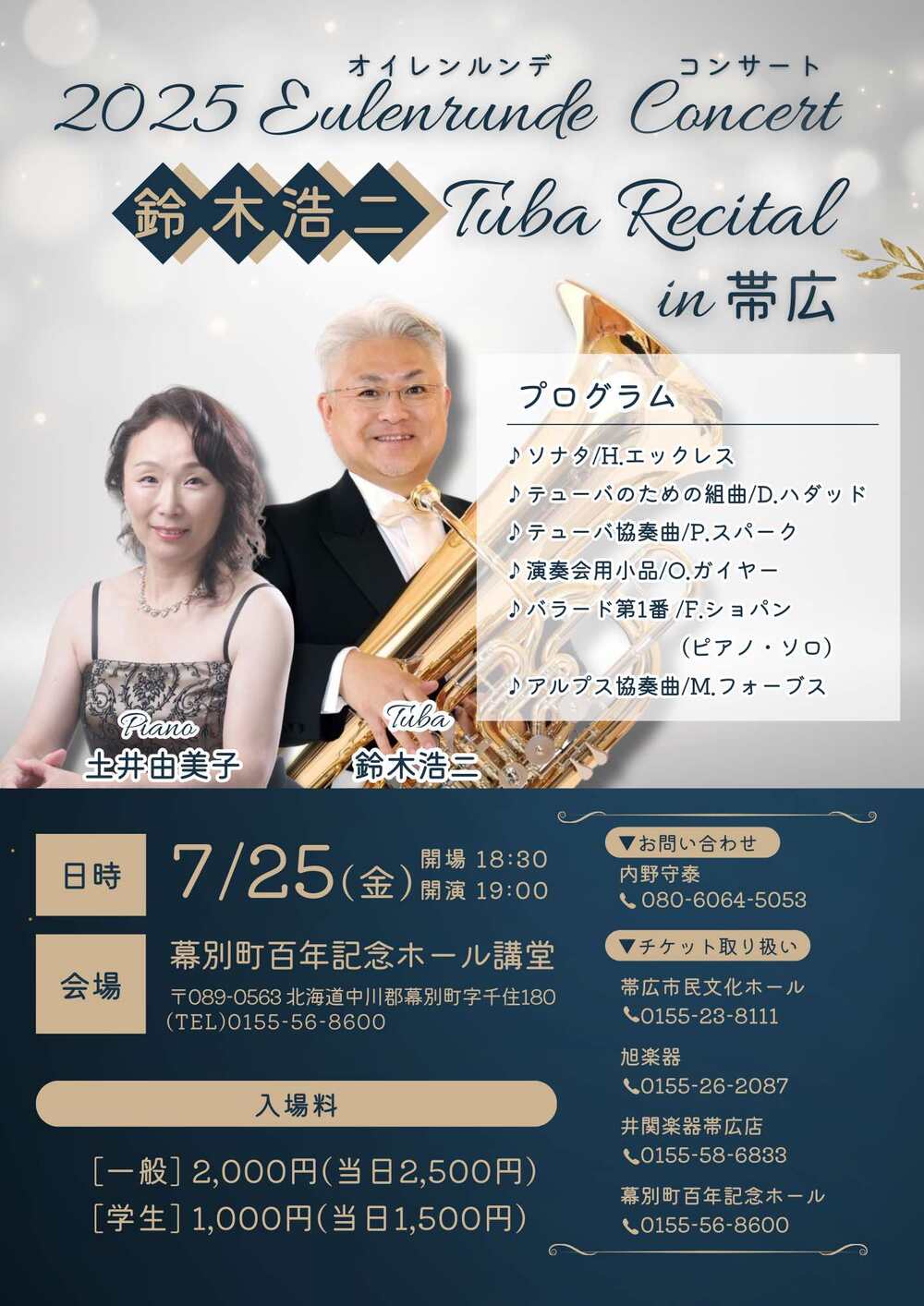 テューバ・ピアノデュオのオイレンルンデによる帯広でのリサイタル。