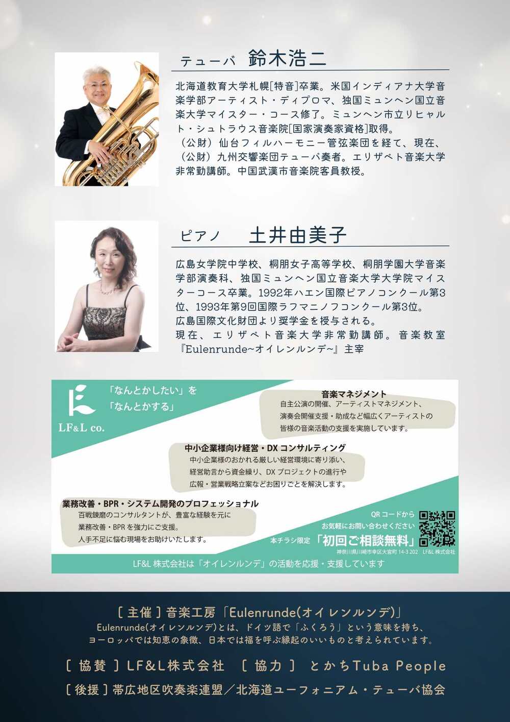 「とかちTuba People 」の皆さんからのリクエストから構成されたプログラムは、正に「今」聴くべきテューバ・ピアノの至極の名曲集!