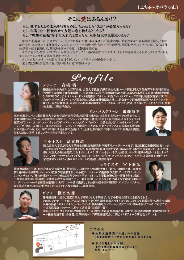 四国中央市にオペラを根付かせることを目的として結成されたしこちゅ〜オペラ実行委員会がお届けする、本格的なオペラ〜コンサートの第3弾!