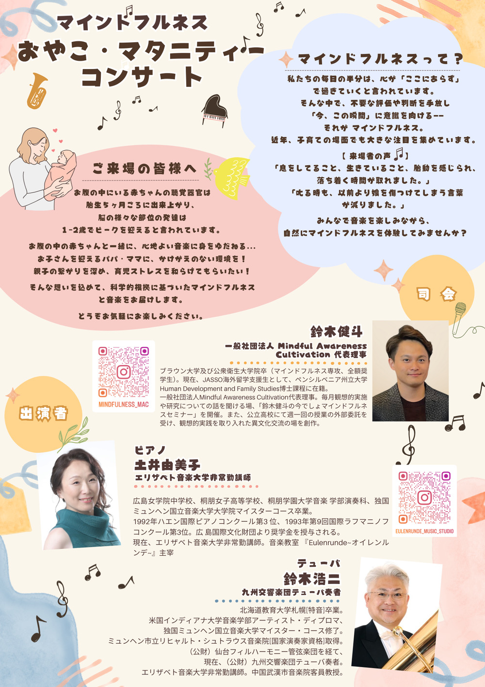 〜おやこで楽しむ今このひととき〜マインドフルネスおやこ・マタニティコンサート