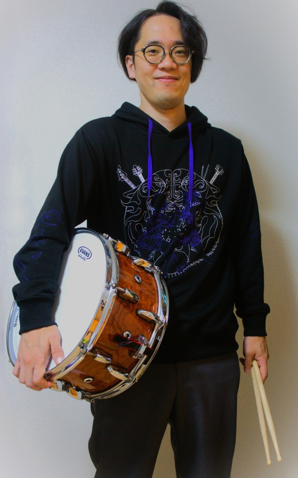 広島県東広島市出身。広島文化学園大学学芸学部音楽学科卒業 打楽器(ドラムス)専攻。