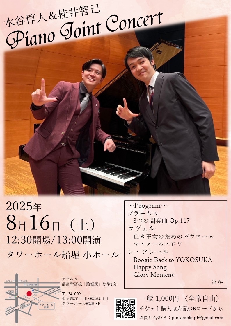 後半は連弾で、レ・フレールさんの曲をお送りします。ブギウギや聞いたことある曲のアレンジなど、どなたでもお楽しみいただける内容になっております。ぜひご来場ください!