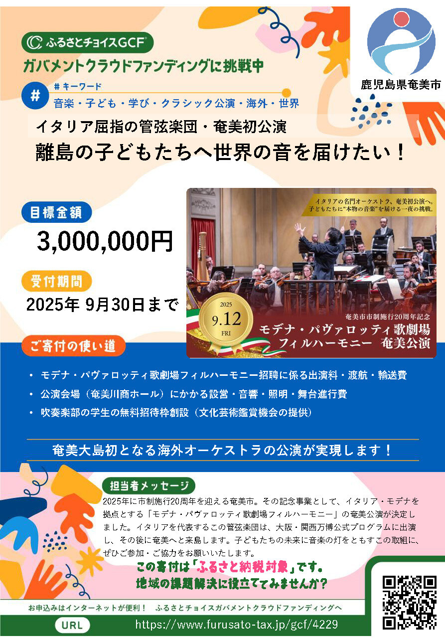 ★本公演は、奄美市のふるさと納税で応援頂くことができます。(ふるさと納税によってチケットを入手できるわけではございません)