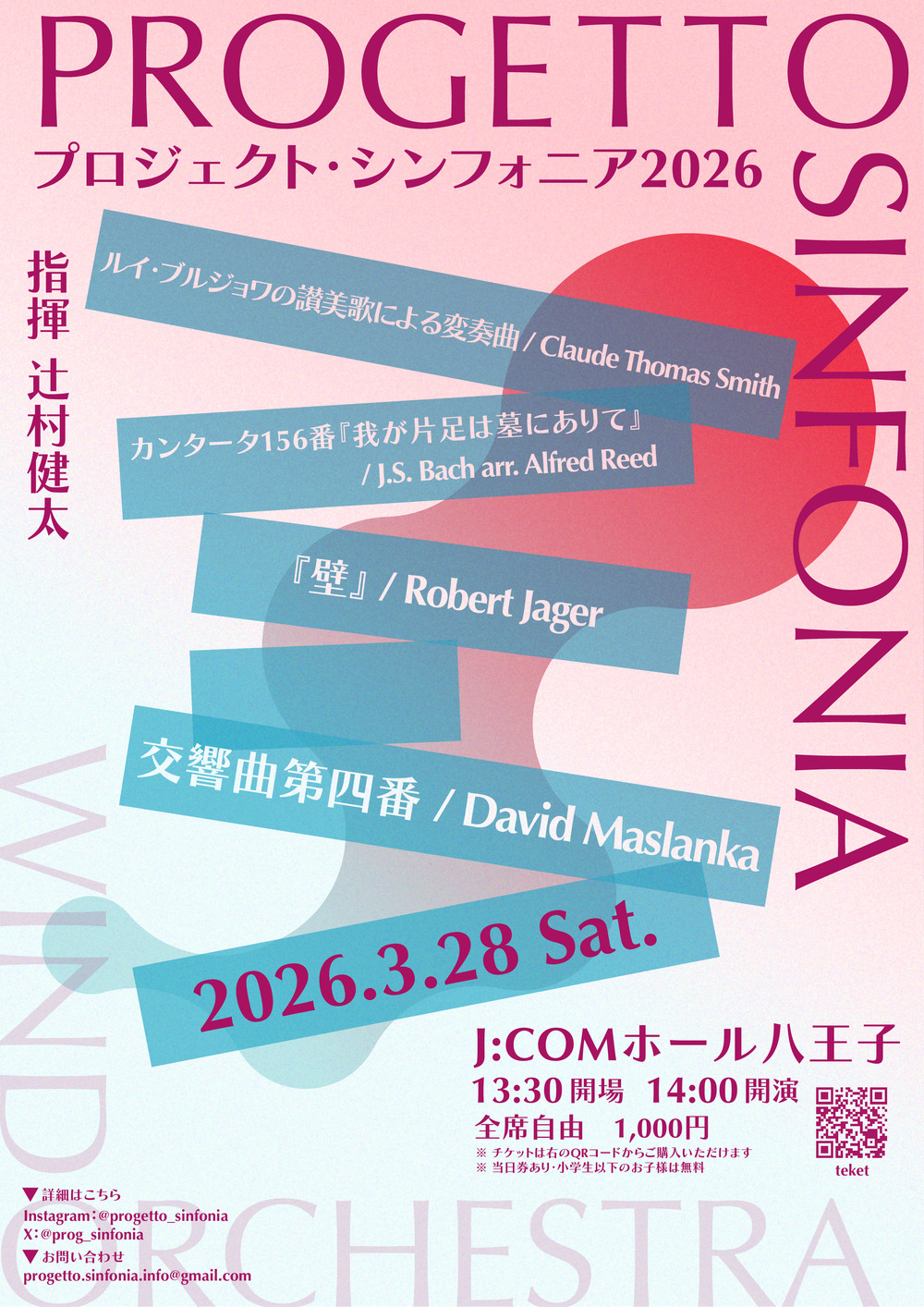 Proggeto Sinfoniaは、そういった優れた吹奏楽作品の紹介を通して、吹奏楽がローブロウな音楽であるという固定観念を、世間から少しずつ無くしていくことを目標としています。