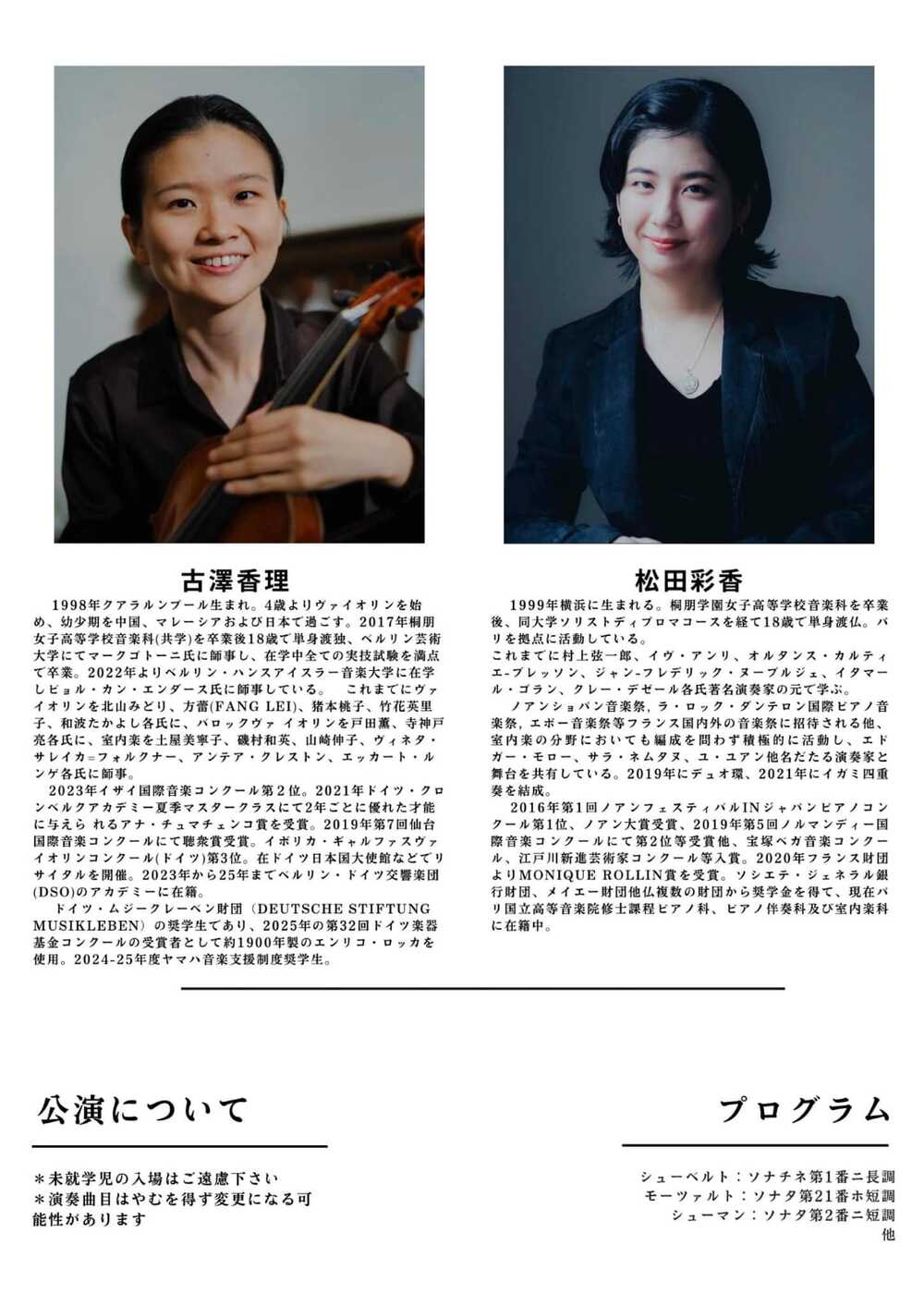 古澤香理(ヴァイオリン)、松田彩香(ピアノ)