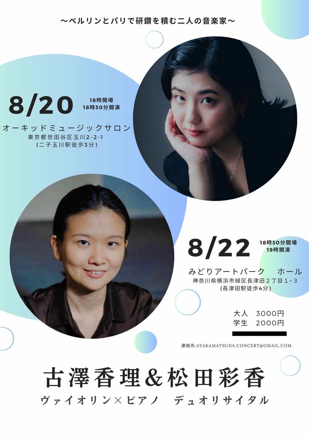 メールアドレス:ayakamatsuda.concert@gmail.com