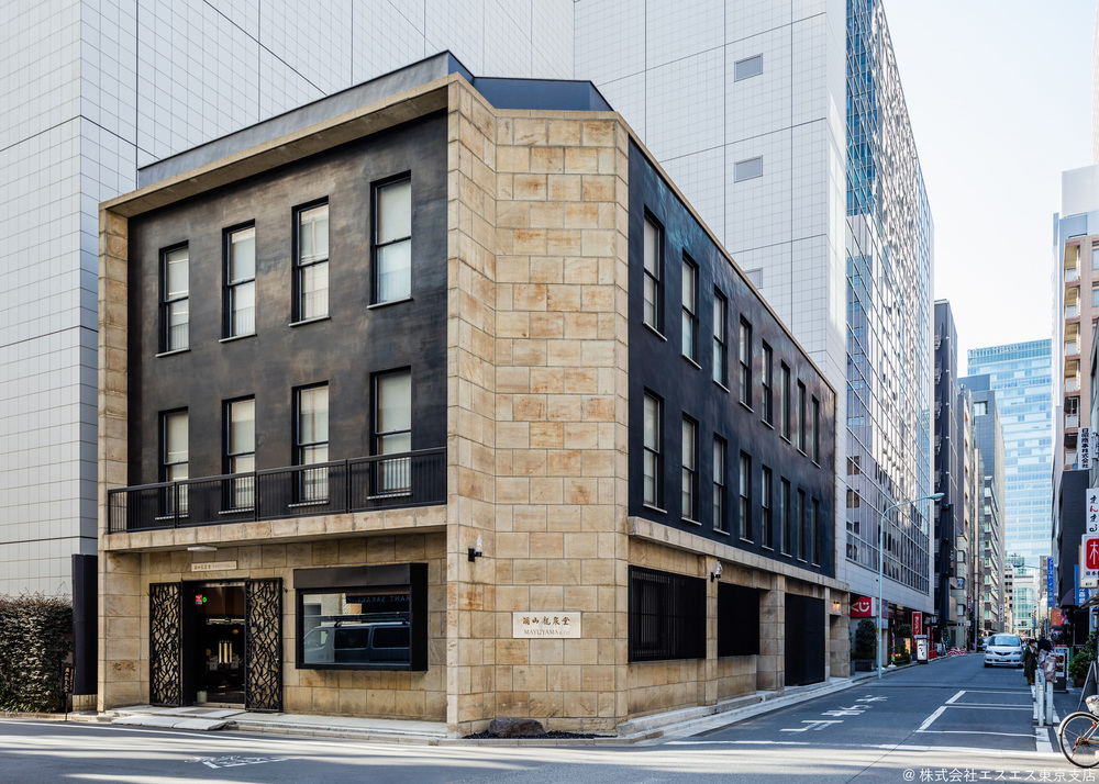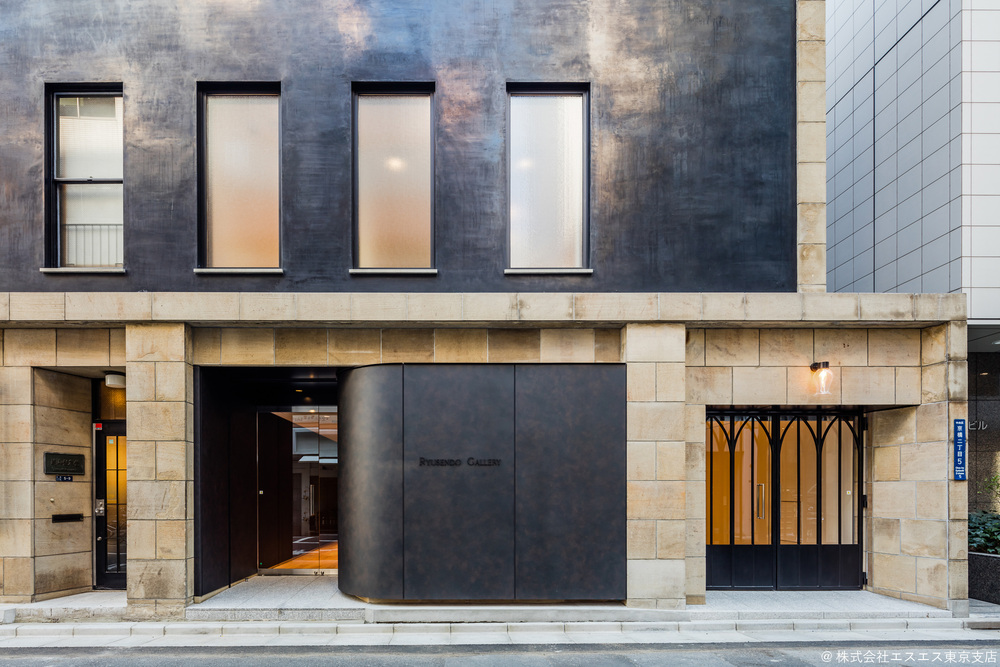 京橋に佇む東洋古美術商の老舗「繭山龍泉堂」。額縁状に配された由良石と、弁柄入りの黒漆喰仕上げで囲われた縦長の窓が独特の風合いを醸す建築は、東畑建築事務所の創業者・東畑謙三の設計によるもので、2019年の改修を経て、建物は登録有形文化財(建造物)に指定されました。今回は東京建築祭にあわせ、建物内の「RYUSENDO GALLERY」を特別に公開し、創業者・東畑謙三が蒐集したウィトルウィウス「建築十書」やパラーディオ「建築四書」をはじめとする世界・国内有数の稀覯本コレクションや江戸時代の古地図など「清林文庫」の一部を展示します。