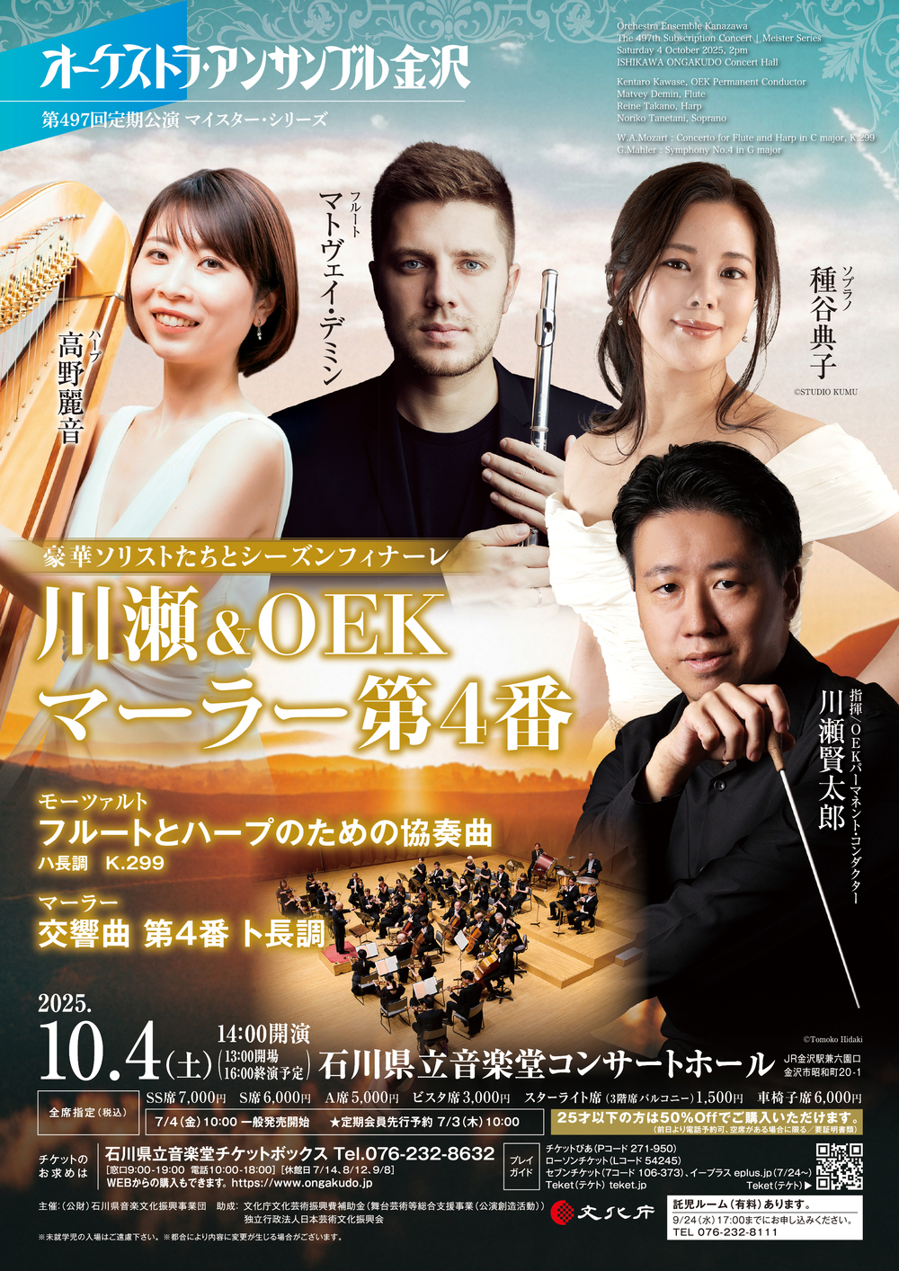 マイスター・シリーズも最後は編成を増やし、2023年9月の「大地の歌」に続く川瀬のマーラー、室内楽的な協奏が魅力の交響曲第4番をお届けします。