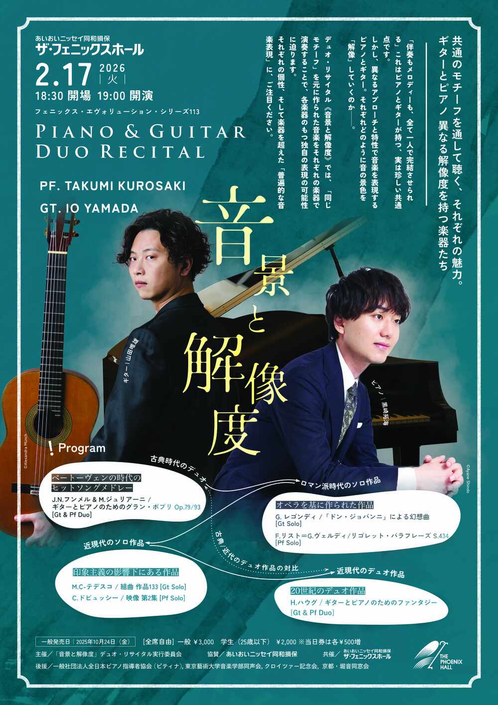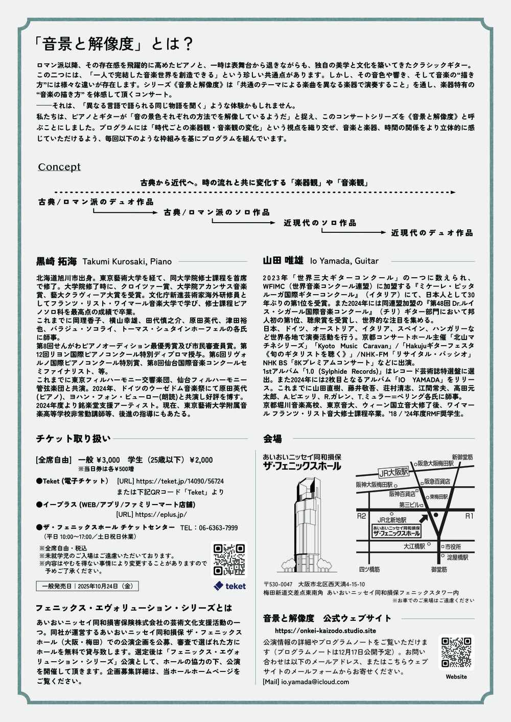 私たちは、ピアノとギターが「音の景色それぞれの方法でを解像しているようだ」と捉え、このコンサートシリーズを《音景と解像度》と呼ぶことにしました。