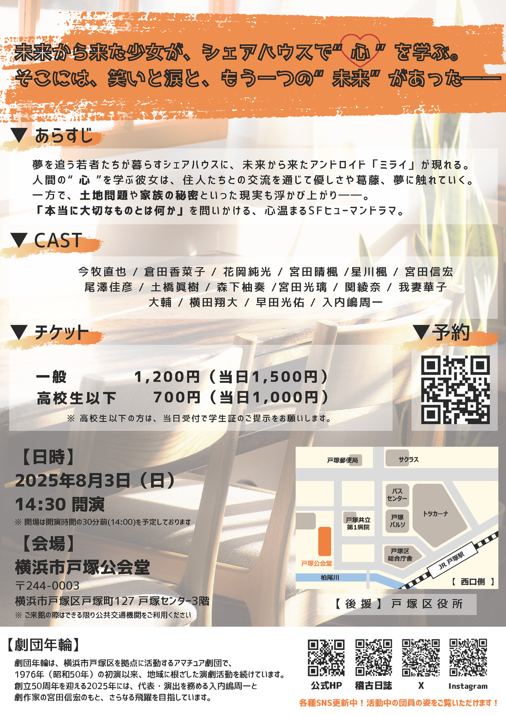 夢を追う若者たちが暮らすシェアハウスに、未来から来たアンドロイド「ミライ」が現れる。