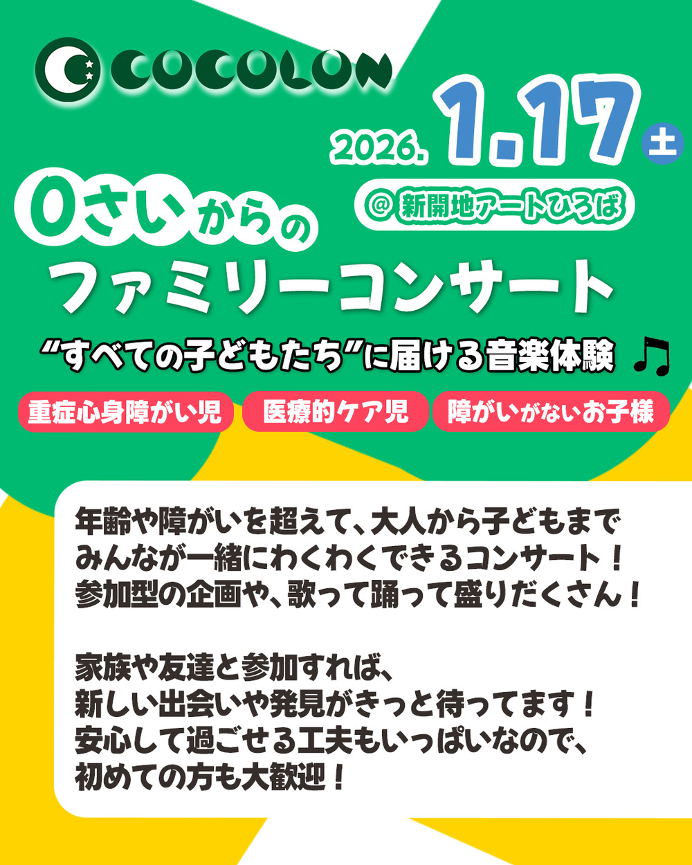 年齢や障がいの有無を超えて、誰もが一緒にわくわくできるコンサート!