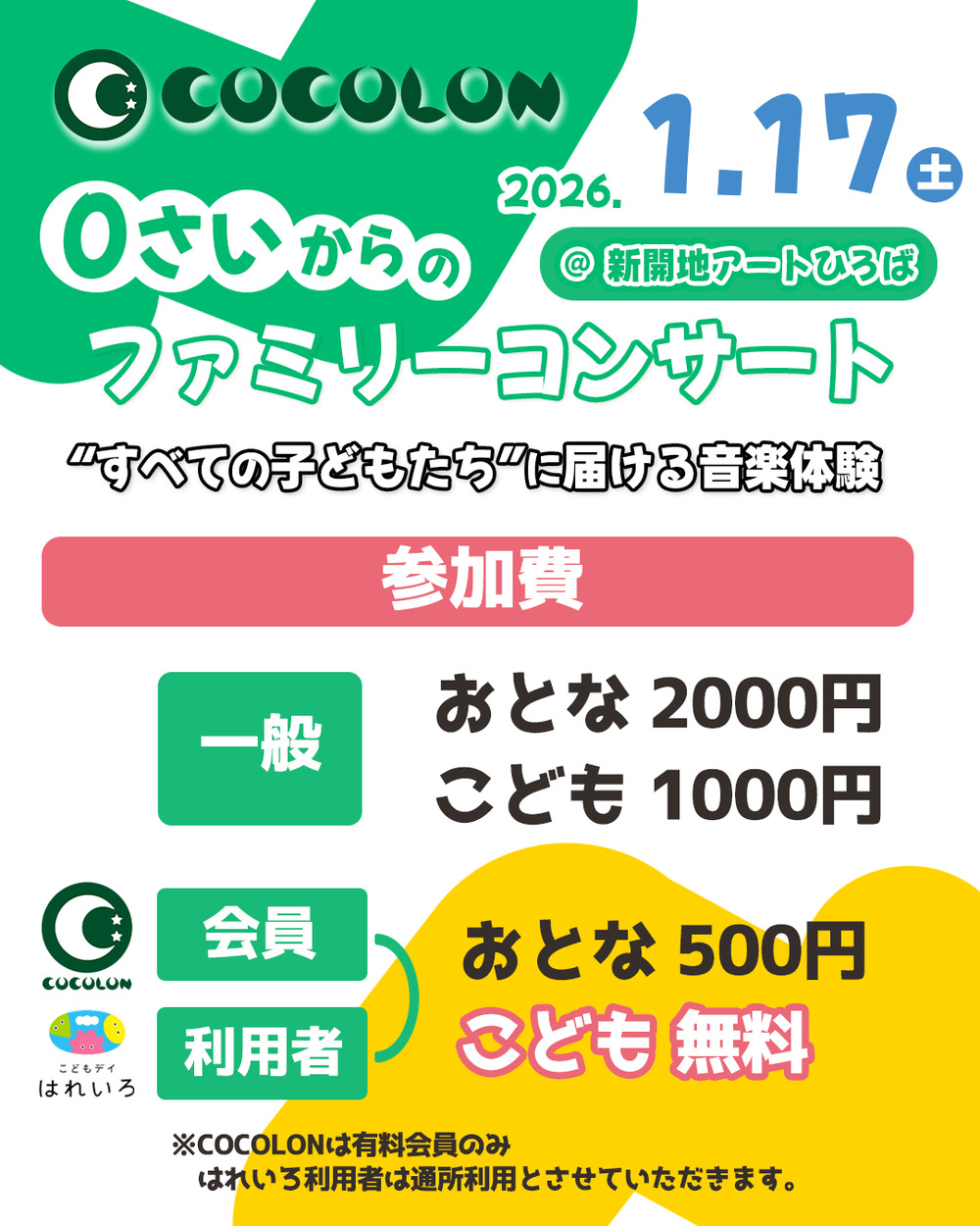COCOLON有料会員:大人500円、子ども無料!