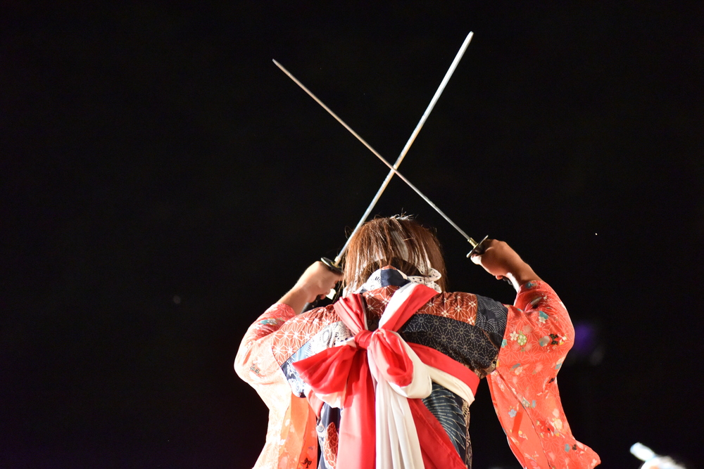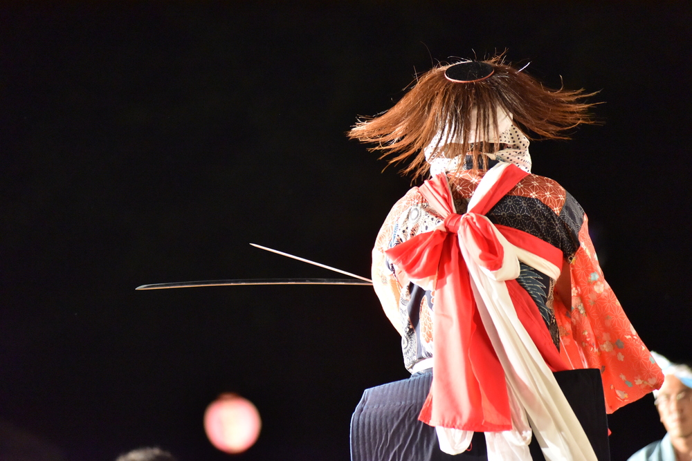 二本の剣を持ち、大地を踏みしめ、剣を振るって魔を祓う破邪の舞です。