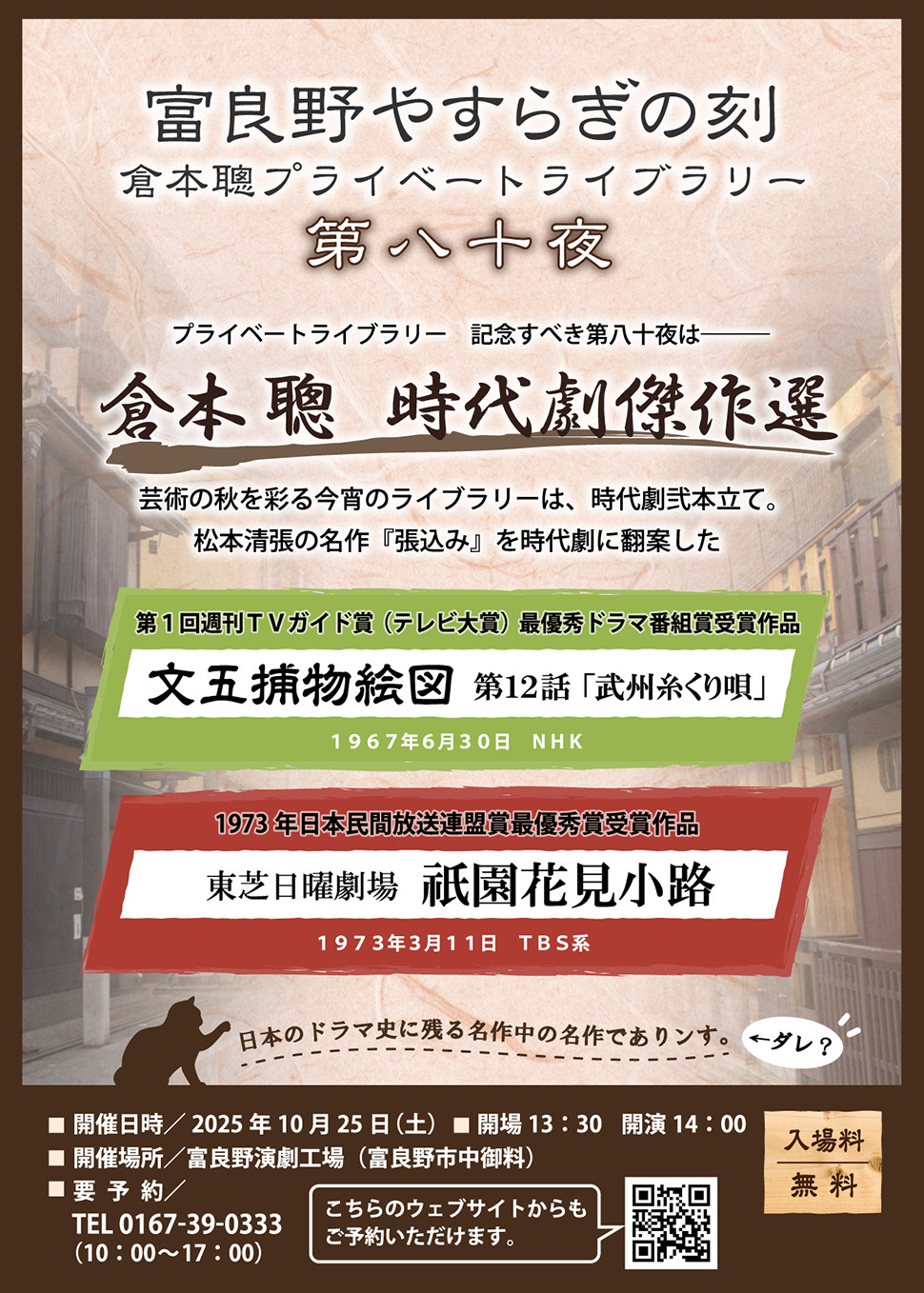 この『富良野やすらぎの刻』は倉本聰先生の約70年にわたる作家生活で産み出された1000を越える作品の中から、厳選した作品について、今だから語れるエピソードや当時のテレビ界についてお聞かせ頂く、というイベントです。