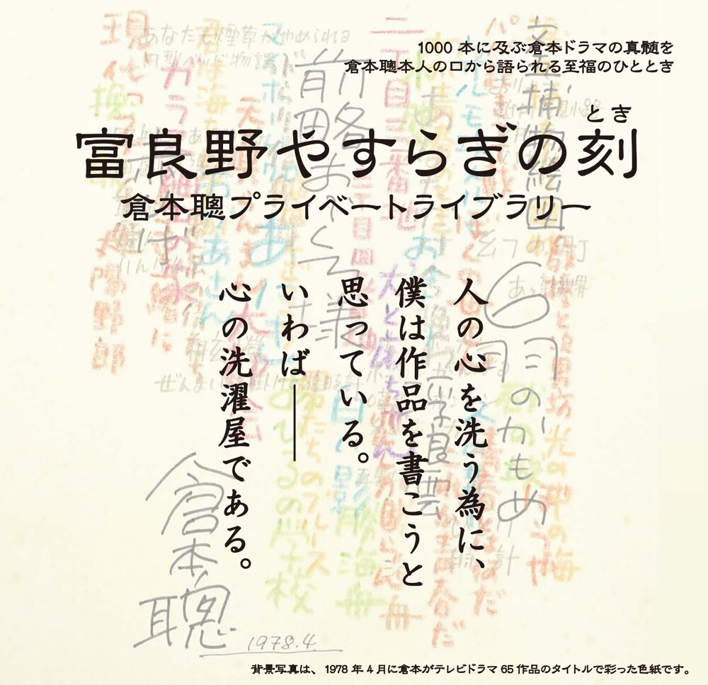 この『富良野やすらぎの刻』は倉本聰先生の約70年にわたる作家生活で産み出された1000を越える作品の中から、厳選した作品について、今だから語れるエピソードや当時のテレビ界についてお聞かせ頂く、というイベントです。