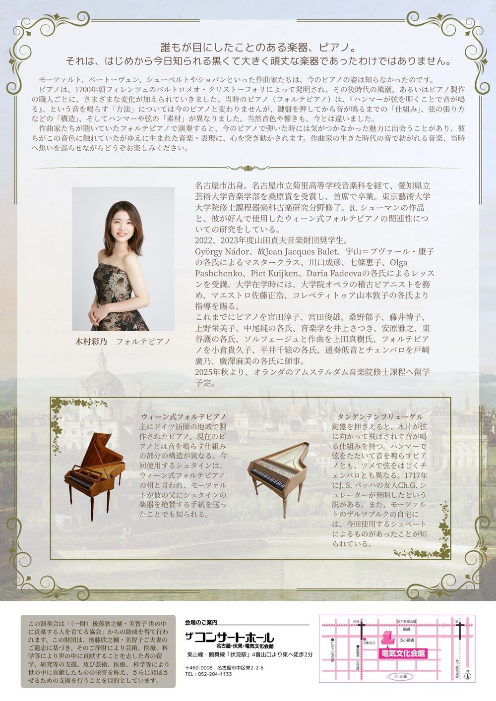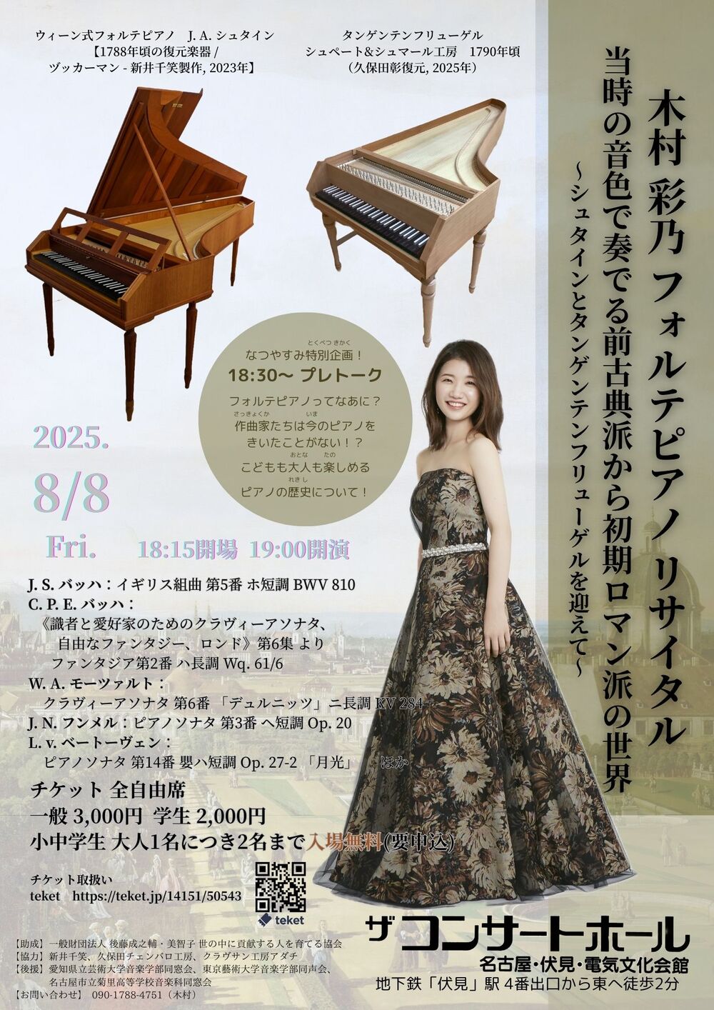 モーツァルトがザルツブルクで愛用していたと言われるタンゲンテンフリューゲル、「ウィーン式アクション」を完成させたと言われるJ. A. シュタイン、2台の鍵盤楽器を使用し、17世紀〜18世紀初めの作品をお届けします。作曲家が作品を生み出した時代の音色を聴くめったにない機会、お聴き逃しなく!