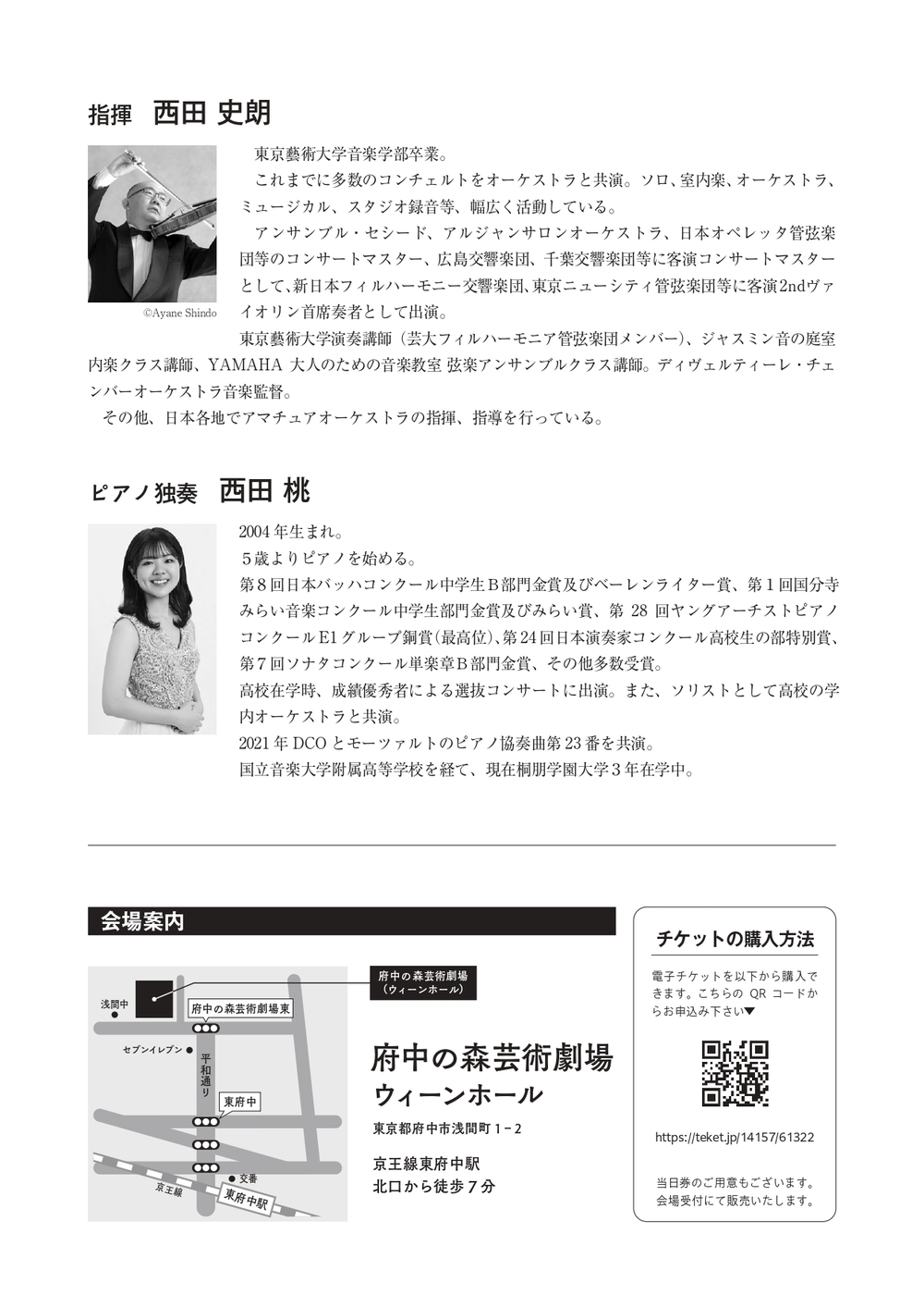 ソリストの西田桃さんとは2021年にモーツァルトピアノ協奏曲第23番で共演いたしました。