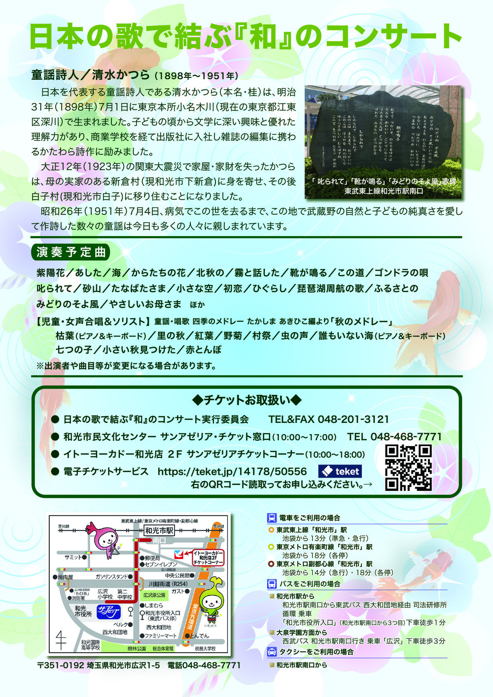主 催:日本の歌で結ぶ『和』のコンサート実行委員会