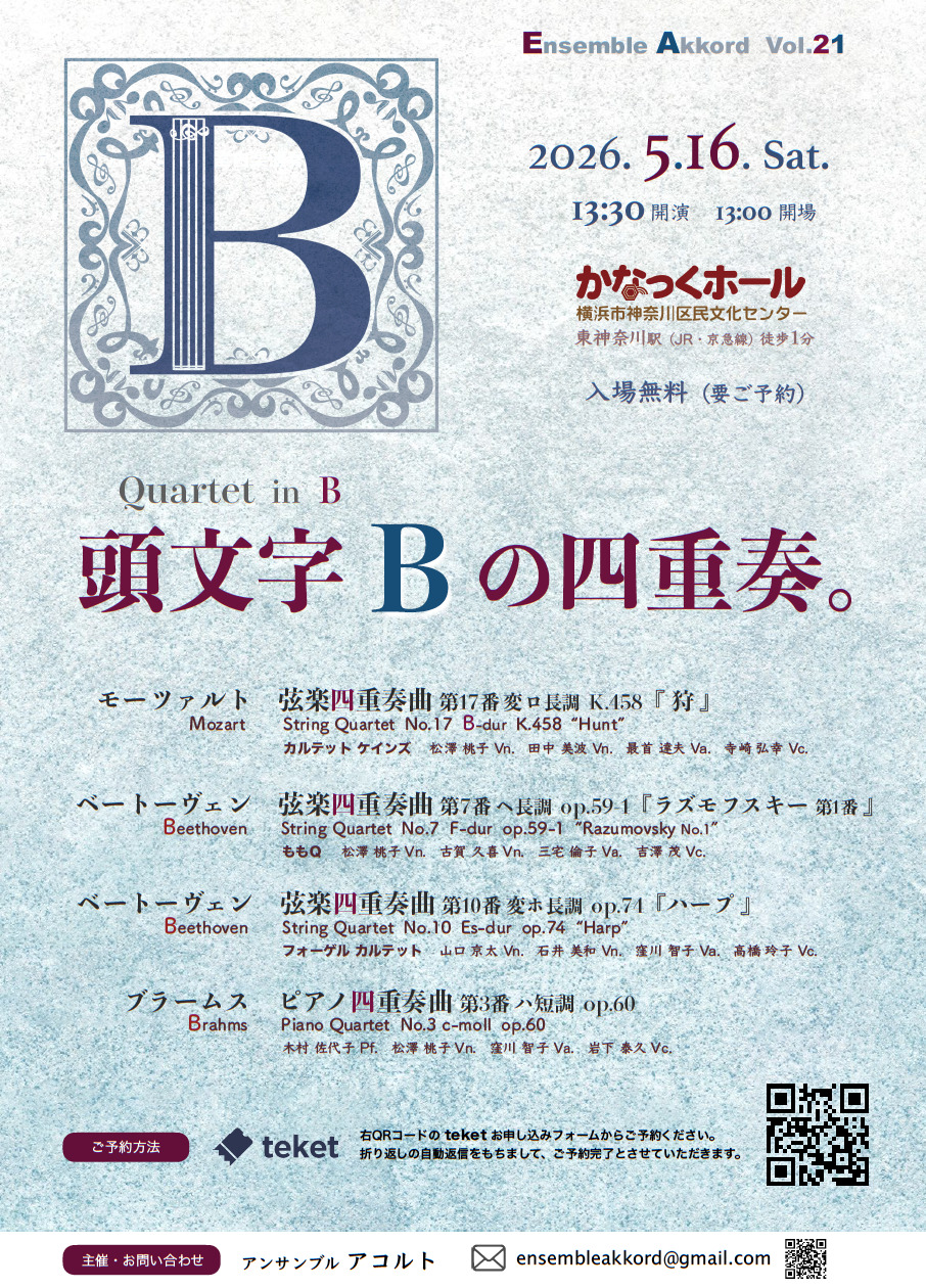 ベートーヴェン 弦楽四重奏曲 第7番 ヘ長調 op.59-1『ラズモフスキー 第1番 』