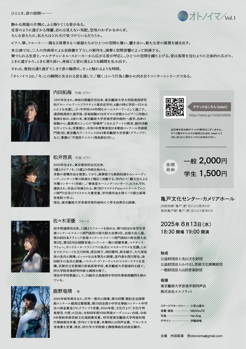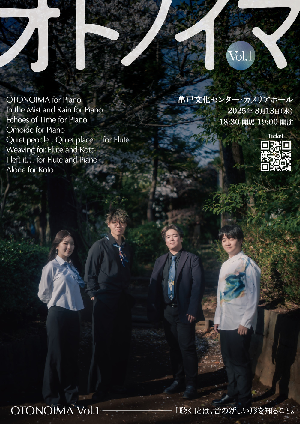 ピアノ、箏、フルート──異なる背景をもつ楽器たちがひとつの空間に集い、響き合い、新たな音の風景を描き出す。
