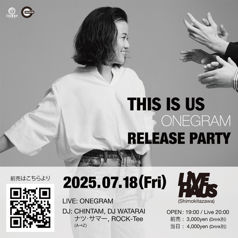 渾身のニュー・アルバム「THIS IS US」をリリースするONEGRAMが、2025年7月18日(金)に下北沢LIVEHAUSにて発売記念ライヴ・イベントを開催します。アルバムに収録された楽曲を余す所なく披露する貴重なライヴです。DJにCHINTAM、DJ WATARAI、ナツ・サマー、ROCK-TeeとONEGRAMにゆかりのある豪華DJ陣も出演し、イベントを盛り上げます。