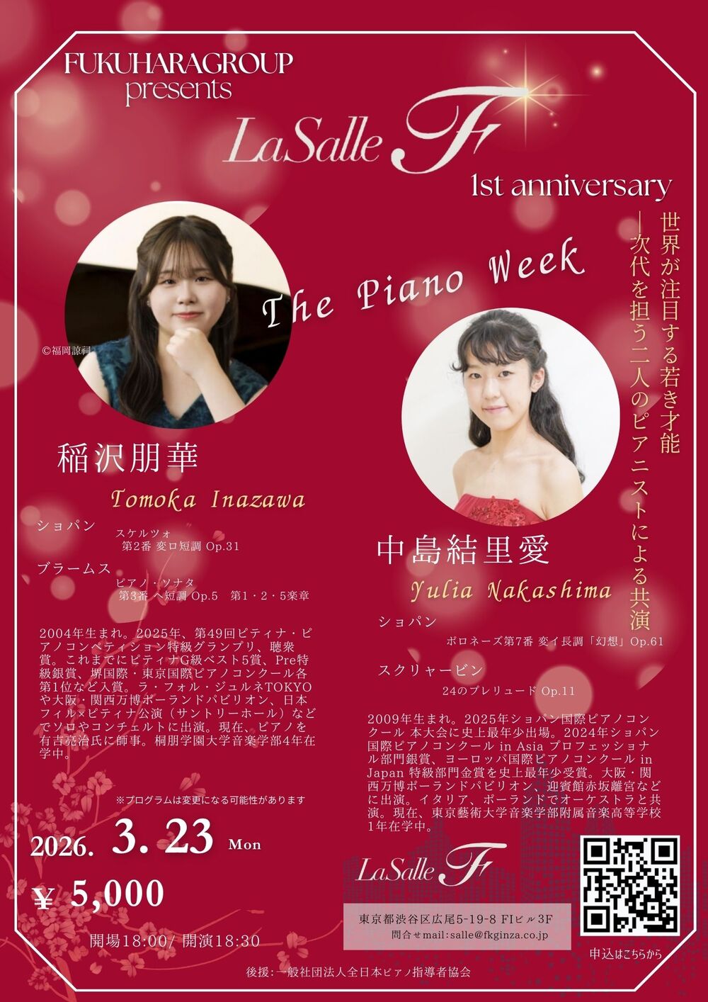 日本フィル×ピティナ公演(サントリーホール)などでソロやコンチェルトに出演。