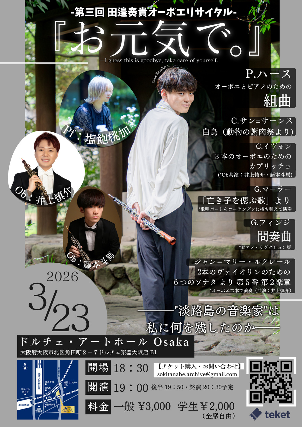 田邉奏貴による、最初(で次がいつになるか分からない)の関西リサイタル、ぜひお越しくださいませ!