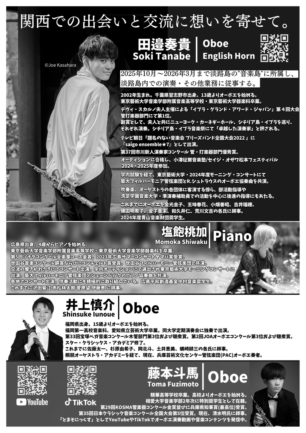 約半年間の関西生活を通して得た、出会いと交流に想いを寄せる、オーボエによるクラシック・コンサートです。