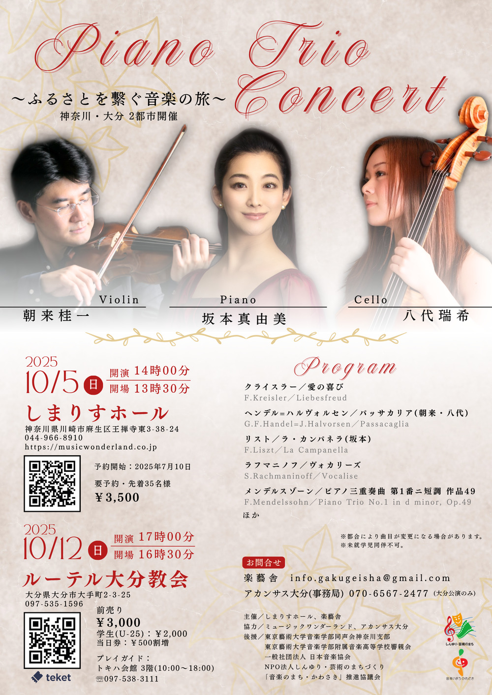 東京藝大附属高校からの同期3人がそれぞれの故郷である神奈川・大分を巡るコンサートの第2弾をルーテル大分教会で開催!