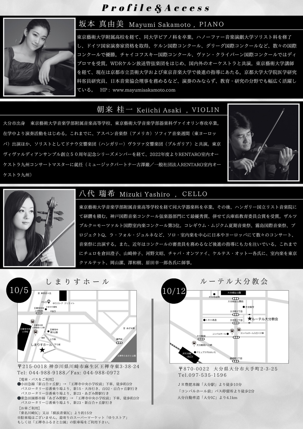 15歳で出会い、共に切磋琢磨してきた3人が織りなすピアノ三重奏の響きをどうぞお楽しみください。