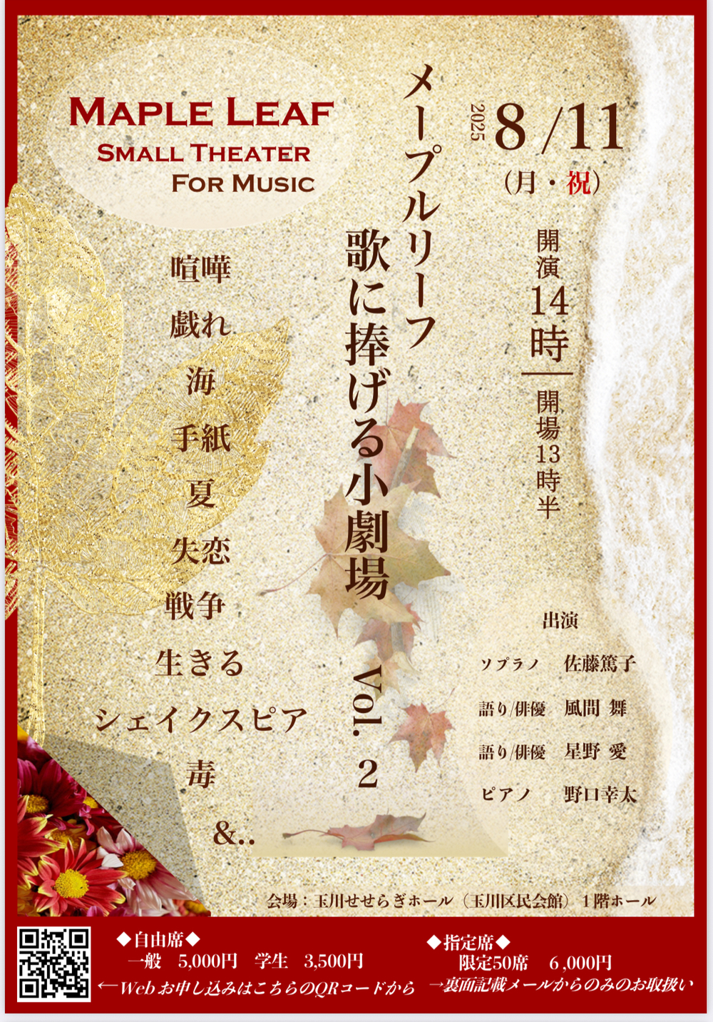 切ない大正ロマンを語るとともに戦後80年を振り返り、当時戦場と化した「海」の上で、兵士の為に医師としての人生を全うした人物にスポットライトを当てながら、実際に書かれた手紙を読み、音楽と芝居でその過去を綴り語り伝える。