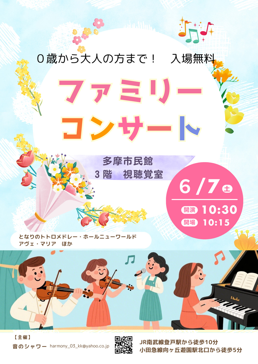 主に神奈川県川崎市内で、0歳から大人の方まで楽しめるコンサートを開催しています。