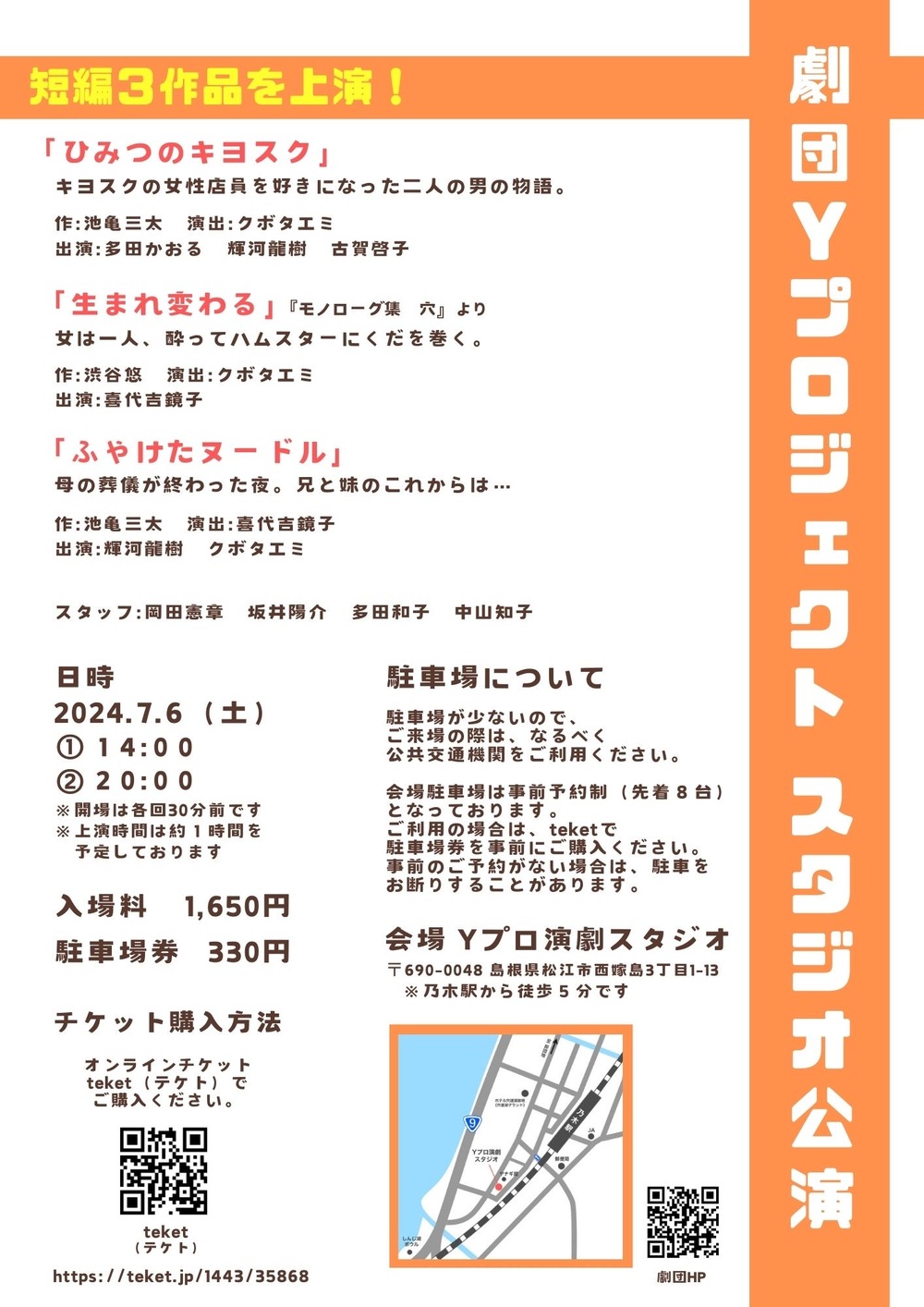 その他のお問い合わせ先:劇団Yプロジェクト 090-8065-1325