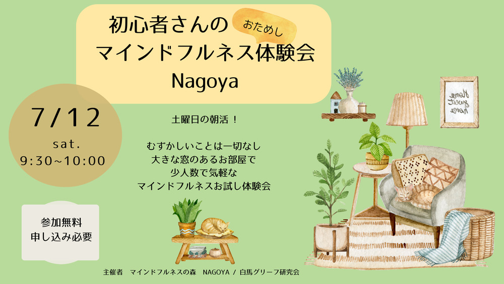 ◼️◼️◼️【無料】7/12 ゆる〜くマインドフルネスを楽しむ 初心者さんのための体験会 名古屋◼️◼️◼️