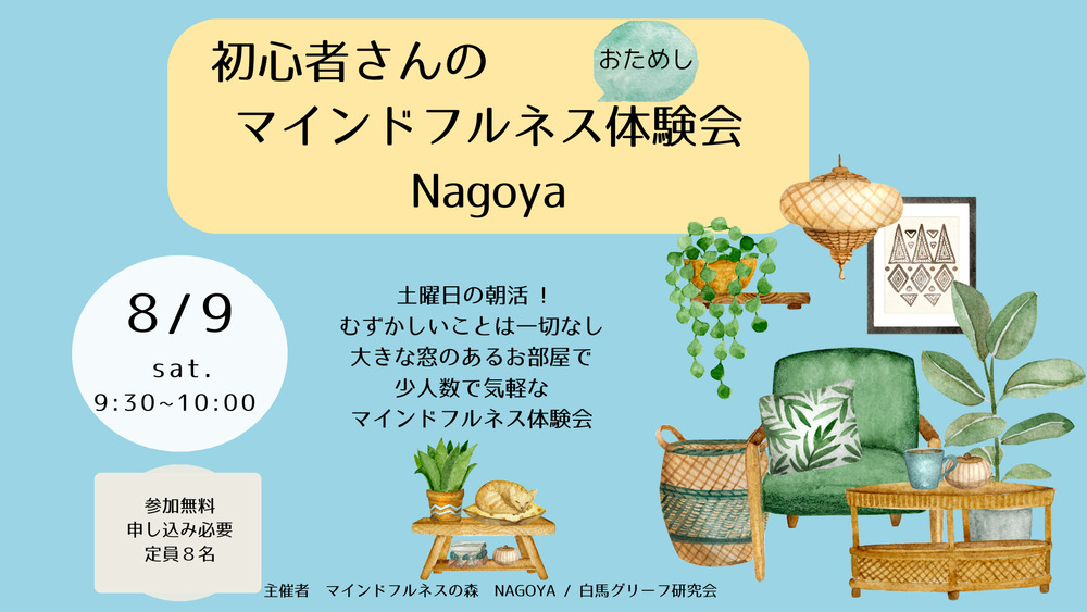こんにちは マインドフルネスの森NAGOYA から 非日常を感じながら、ソファで行うマインドフルネス体験会のご案内です