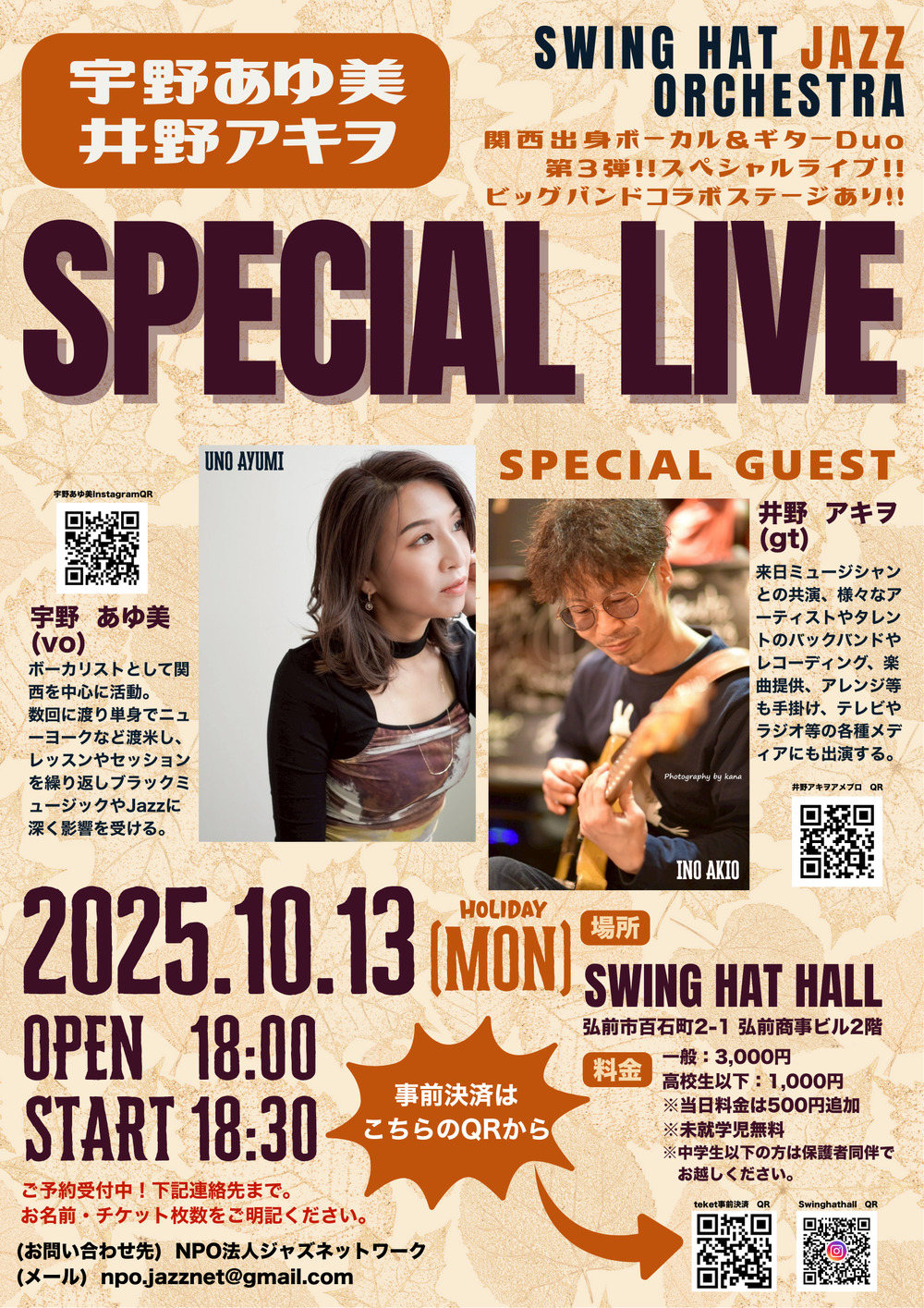 ご予約・お問い合わせ ✉️ npo.jazznet@gmail.com