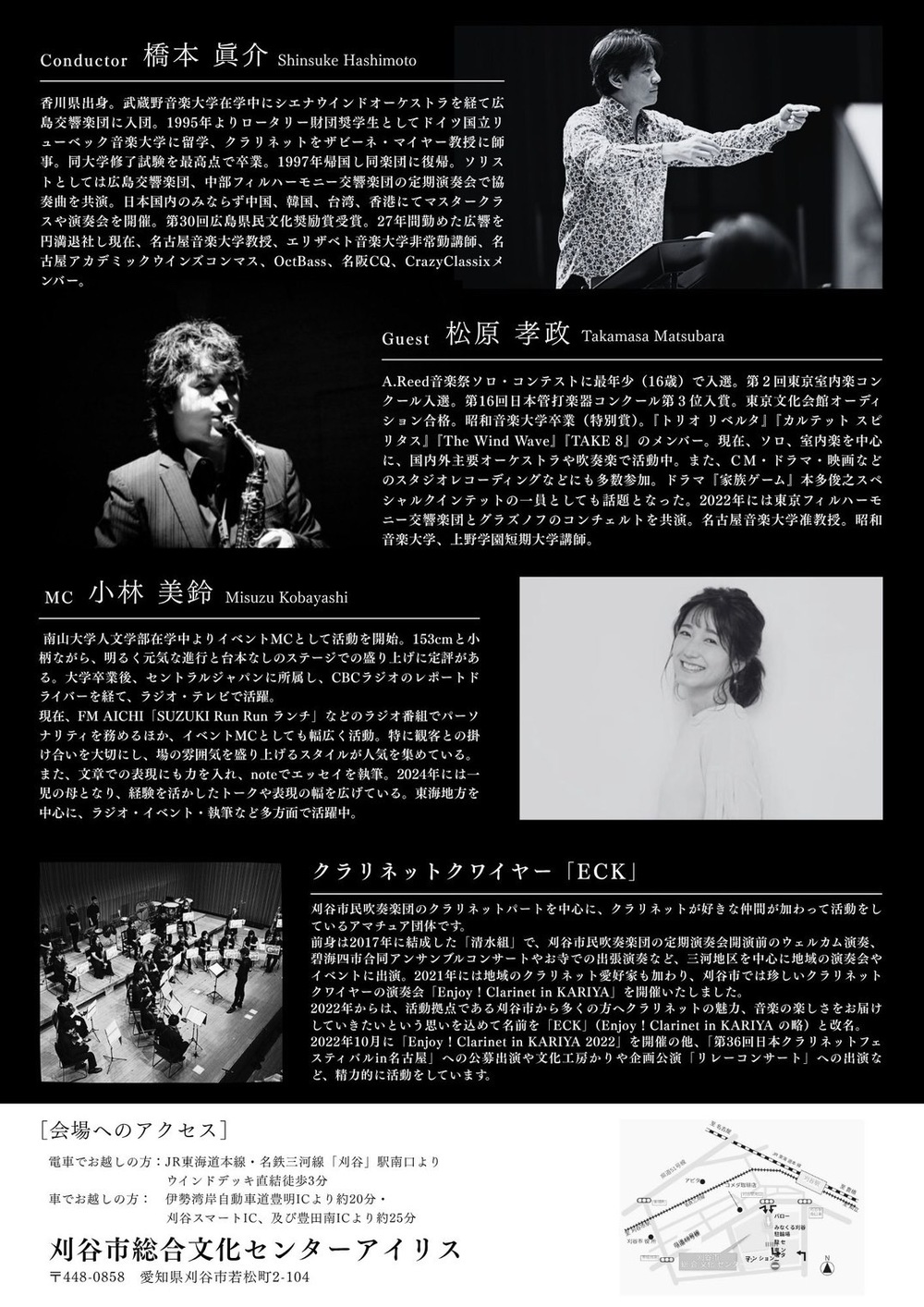アマチュア団体、クラリネットクワイヤーECKが、指揮に橋本眞介、ゲストサキソフォン奏者に松原孝政を招いて異色のコラボを実現!