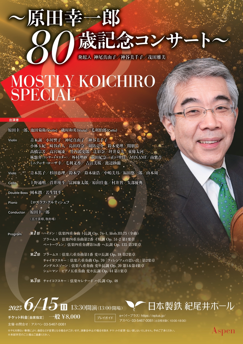 80歳を迎える原田幸一郎を祝し、一日限りの特別なコンサートを開催します。豪華アーティストが集結し、特別な演奏をお届けするこの貴重な機会。ぜひお楽しみください!