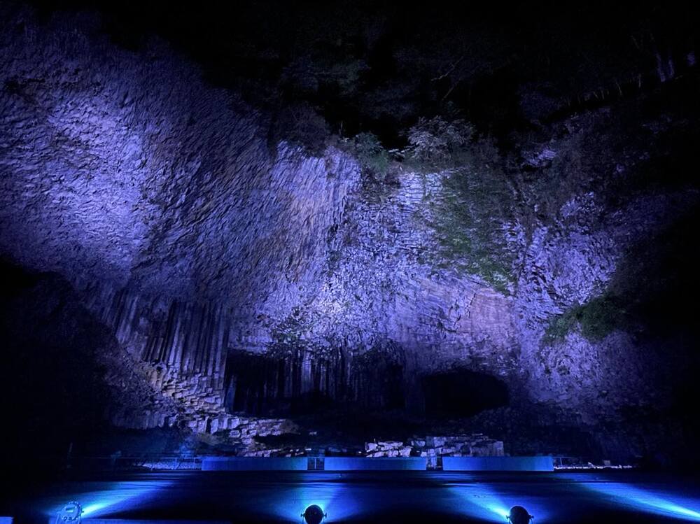 国の天然記念物に指定されている「玄武洞」がライトアップされるなかで人気ソングライターの君島大空さんの音楽ライブを身近で楽しむことができます。