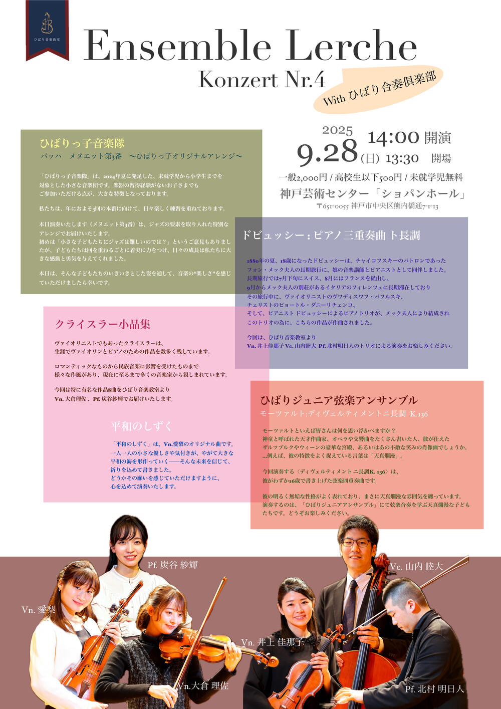 講師陣によるコンサート「Ensemble Lerche(アンサンブル・レルヒェ)」の第4回目の公演!