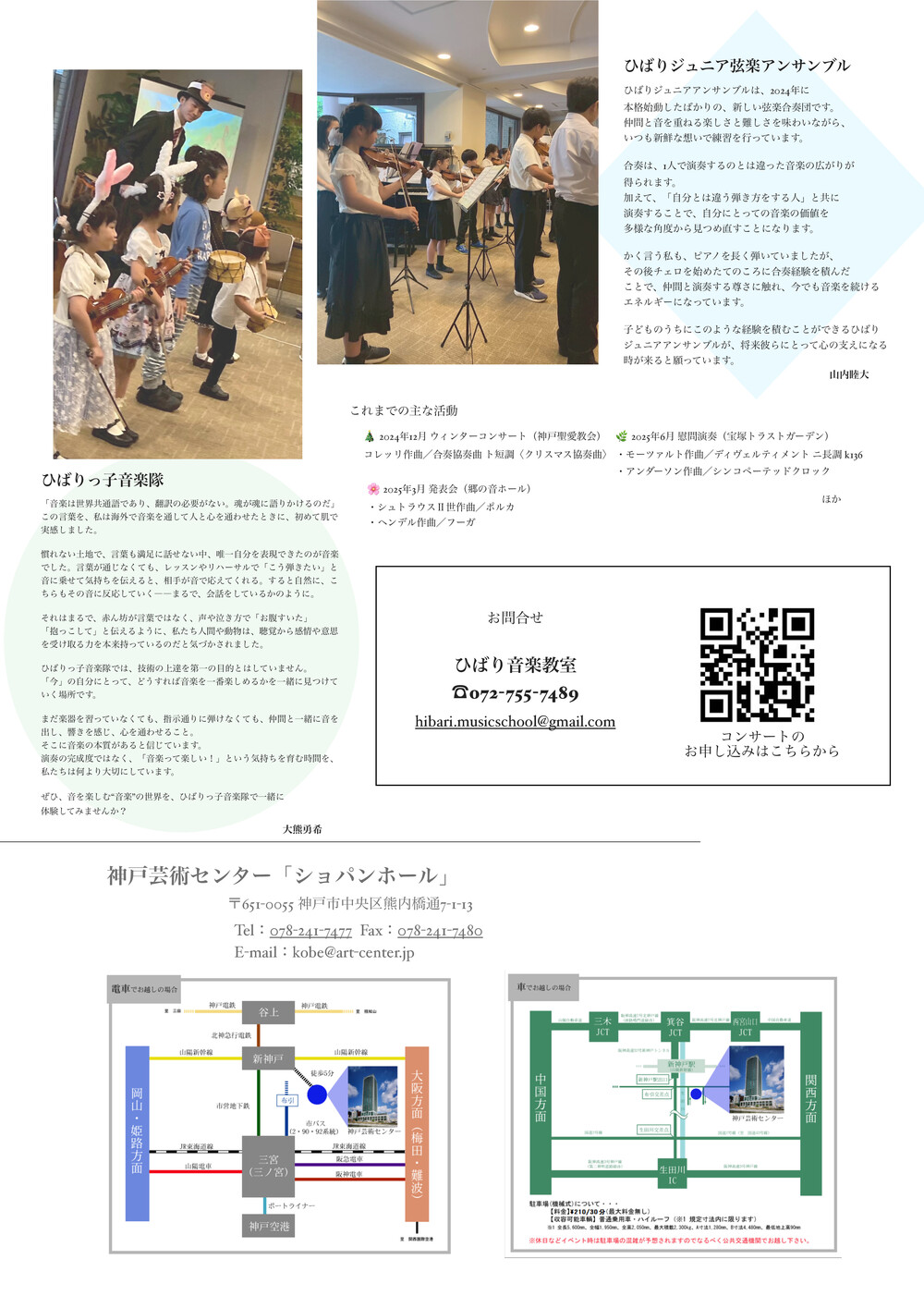 (ひばり合奏倶楽部では、新規生徒様を募集しております。ご興味のある方はぜひ本公演にて雰囲気を感じ取っていただけますと幸いです。)